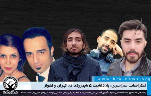 به گزارش خبرگزاری هرانا، ارگان خبری مجموعه فعالان حقوق بشر در ایران، پنج شهروند در جریان اعتراضات سراسری بازداشت شدند.