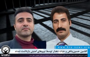 خبرگزاری هرانا – روز جاری، افشین حسینپناهی و خبات دهدار، شهروندان ساکن سنندج توسط نیروهای امنیتی بازداشت و به مکان نامعلومی منتقل شدند.