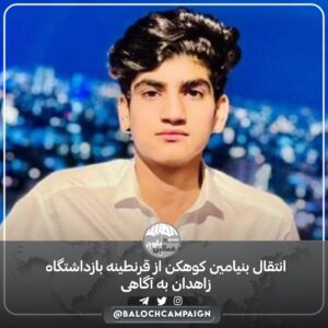 کمپین فعالین بلوچ، در تاریخ ۲۴ اردیبهشت ماه ۱۴۰۲، بنیامین کوهکن که مدت بیش از پانزده روز در قرنطینه بوده به آگاهی منتقل شده است.
