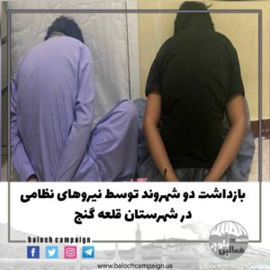 به گزارش کمپین فعالین بلوچ، روز گذشته ۲۴ شهریور ماه ۱۴۰۱، دو شهروند توسط نیروهای نظامی در قلعه گنج بازداشت شدند.