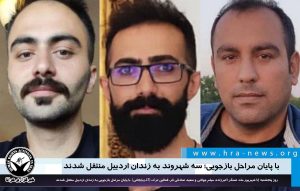 انتقال این فعالین به زندان، با پایان مراحل بازجویی صورت گرفته است. جلسه دادرسی این سه فعال در شعبه ی ۷ بازپرسی دادسرای عمومی و انقلاب اردبیل به ریاست قاضی کامیار سلیم برگزار شد و اتهام آنان “اجتماع و تبانی به قصد برهم زدن امنیت کشور” و “تبلیغ علیه نظام” عنوان شده است.