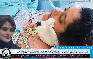 “همانگونه که مطلعید؛ خانم ژینا (مهسا) امینی اهل سقز که برای مسافرت به همراه خانواده به تهران آمده بود، از سوی گشت ارشاد بازداشت و برای هدایت و آموزش!!! به بازداشتگاه وزرا برده می شود که متاسفانه بلافاصله دچار وضعیت وخیم جسمی شده و به کما می رود و پس از دو روز در بیمارستان کسرا از دنیا می رود. در بیانیه مرکز اطلاع رسانی فراجا از حمله ناگهانی قلبی اسم برده شده است و این در حالی است که خانواده ژینا امینی نظر دیگری دارند و سخنان آنان کاملا بر خلاف بیانیه فراجا است.