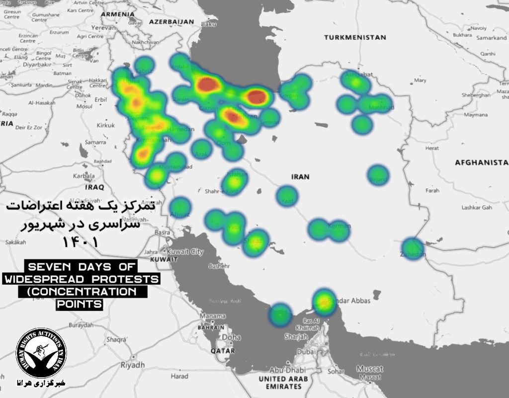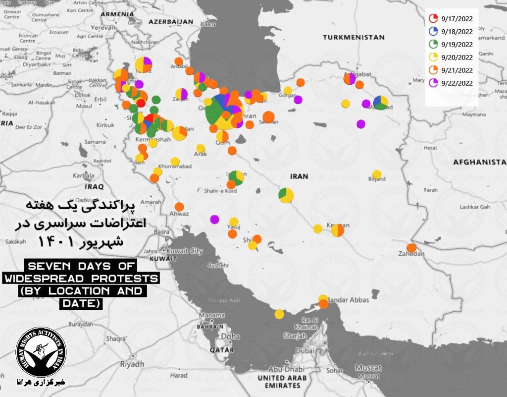 برای درک بهتر از گستره اعتراضات شهریورماه به نقشه پراکندگی آن در یک هفته اخیر بنگرید
