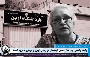 خبرگزاری هرانا – راحله راحمیپور، فعال مدنی ۷۲ ساله که از بیماریهای متعددی از جمله تومور مغزی و تالاسمی مینور رنج میبرد، کماکان با شرایط جسمی نامناسب در زندان اوین نگهداری میشود. این در حالی است که با وجود تایید پزشکی قانونی در خصوص وخامت وضعیت جسمانی او و تاکید بر نیاز فوری به درمان در خارج از زندان، وی همچنان از اعزام به مراکز درمانی محروم مانده است.