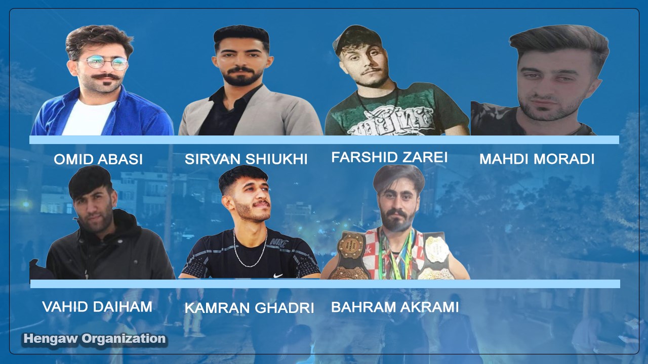 بر اساس گزارش رسیده به سازمان حقوق بشری ههنگاو، در روزهای دوشنبه ٣٠ آبان (٢١ نوامبر ٢٠٢٢) و روز سهشنبه اول آذر ماه، امید عباسی، سیروان شیوخی، ٢٢ ساله، وحید دیهم، ٢۶ ساله، کامران قادری و بهرام اکرمی، هردو ٢۵ سالە و مهدی مرادی با ٢٣ سال سن توسط نیروهای حکومتی در شهر تکاب ربوده شدند.
