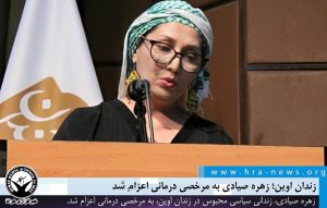 به گزارش خبرگزاری هرانا، ارگان خبری مجموعه فعالان حقوق بشر در ایران، زهره صیادی، زندانی سیاسی بیمار از زندان اوین به مرخصی درمانی اعزام شد.