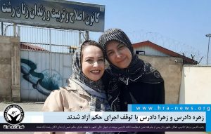 خبرگزاری هرانا – امروز یکشنبه ۱۷ فروردینماه، زهره دادرس و زهرا دادرس، فعالان حقوق زنان پس از پذیرفته شدن درخواست اعاده دادرسی پرونده در دیوان عالی کشور، با توقف اجرای حکم حبس از زندان لاکان رشت آزاد شدند.