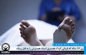 یک زن شانزده ساله در تهران که قربانی کودک همسری است، با همدستی فردی دیگر همسر خود را به قتل رساند.به گزارش خبرگزاری هرانا به نقل از اعتماد، مردی در تهران توسط همسرش به قتل رسید. بر اساس این گزارش، در آبان ماه سال گذشته در پی تماس زن نوجوان شانزده ساله با پلیس ۱۱۰ تهران مبنی بر خودکشی همسرش، ماموران پلیس به محل حادثه اعزام شدند. با حضور ماموران در محل پس از انجام تحقیقات اولیه و شواهد صحنه وقوع حادثه مشخص شد که مقتول توسط ضرباتی که به پشت وی وارد شده است به قتل رسیده است. پس از انجام تحقیقات پلیس به دستور بازپرس جنایی زن نوجوان بازداشت شد. متهم پس از بازداشت با اعتراف به قتل همسر خود عنوان کرد که یکسال قبل به اصرار خانواده زمانی که ۱۵ سال داشتم با شوهرم که ۲۸ ساله بود ازدواج کردم. در این مدت درگیری داشتیم و من توسط همسرم کتک میخوردم. پس از مدتی با مردی آشنا شدم و وی را در جریان این موضوع قرار دادم. نهایتا تصمیم گرفتم همسرم را با همدستی آن مرد به قتل برسانم. شب حادثه در خانه را باز گذاشتم شوهر وقتی خواب بود اول من سه ضربه به شوهرم زدم و ناگهان او از خواب پرید. بعد از آن بود که آن مرد هم چند ضربه به او زد و بعد جسدش را به حمام بردیم و با صحنه سازی به پلیس زنگ زدم و گفتم شوهرم خودکشی است. در این گزارش آمده است، در پی اعترافات متهم، تحقیقات برای شناسایی همدست فراری او آغاز شد. زن نوجوان به کانون اصلاح و تربیت فرستاده شد و پرونده وی نیز برای رسیدگی به دادگاه اطفال ارجاع داده شده است. آسیبهای جسمی و روانی ناشی از ازدواج در دوران کودکی، ضربات جبران ناپذیری را بر زندگی این کودکان وارد می کند. بارداری های زیر ۱۸ سال، مرگ و میر مادران، افسردگی، اقدام به خودکشی، طلاق، بازماندن از تحصیل و پایداری چرخه فقر فرهنگی و اقتصادی از جمله این آسیب ها است.