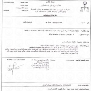 روز دوشنبه هشتم مردادماه، سارا سیاه پور، فعال صنفی معلمان با دریافت ابلاغیه ای به شعبه ۲۱ بازپرسی دادسرای عمومی و انقلاب کرج احضار شد. به گزارش خبرگزاری هرانا، ارگان خبری مجموعه فعالان حقوق بشر در ایران، سارا سیاه پور به دادسرا احضار شد. بر اساس احضاریه ای که در تاریخ هشتم مردادماه توسط محسن تدین، جانشین بازپرس شعبه ۲۱ دادسرای عمومی و انقلاب کرج صادر و به خانم سیاه پور ابلاغ شده، از وی خواسته شده است تا ظرف مهلت پنج روز از زمان صدور احضاریه، جهت دفاع از اتهام تبلیغ علیه نظام در این شعبه حاضر شود. پیشتر در اسفند ۱۴۰۲، خانم سیاه پور توسط هیات رسیدگی به تخلفات آموزش پرورش استان البرز از کار برکنار شده بود. سارا سیاه پور، متولد ۱۳۵۸، فرزند کریم، مجرد، فارغ التحصیل در مقطع کارشناسی و دارای شانزده سال سابقه خدمت در وزارت اموزش و پرورش، در تاریخ دوم شهریور ۱۴۰۱، توسط نیروهای امنیتی بازداشت و در تاریخ دوازدهم شهریورماه همان سال، با تودیع وثیقه آزاد شد.روی در دی ماه ۱۴۰۱ توسط شعبه پانزده دادگاه انقلاب تهران به ریاست ابوالقاسم صلواتی از بابت اتهام اجتماع و تبانی به پنج سال حبس و از بابت اتهام فعالیت تبلیغی علیه نظام به یک سال حبس محکوم شد و همچنین، به عنوان مجازات تکمیلی به دو سال ممنوعیت خروج از کشور، عضویت در احزاب، دسته جات و گروه های سیاسی و فعالیت در فضای مجازی محکوم شد.واین حکم توسط دادگاه تجدیدنظر استان تهران تایید و به شعبه یک اجرای احکام زندان اوین ارجاع داده شد. در نهایت این فعال صنفی معلمان، اواخر مرداد ۱۴۰۲، جهت اجرای حکم حبس به شعبه یک اجرای احکام دادسرای اوین احضار شد.