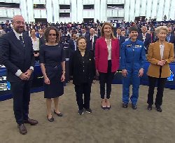 در این جلسه اورسولا فون درلاین، رئیس کمیسیون اتحادیه اروپا و شارل میشل، رئیس شورای اروپا نیز حضور داشتند. خانم فون درلاین با تشکر و تقدیر از خانم عبادی و اشاره به سابقه کار و فعالیت سیاسی او در داخل ایران گفت: «امروز تمام دنیا از زنان ایران انگشت به دهان مانده است.»