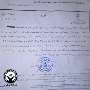 محکومیت سارا عسکریان، دانشجوی دانشگاه بیرجند به دو ترم تعلیق از تحصیل، توسط شورای تجدیدنظر انضباطی دانشجویان این دانشگاه عینا تایید شد.