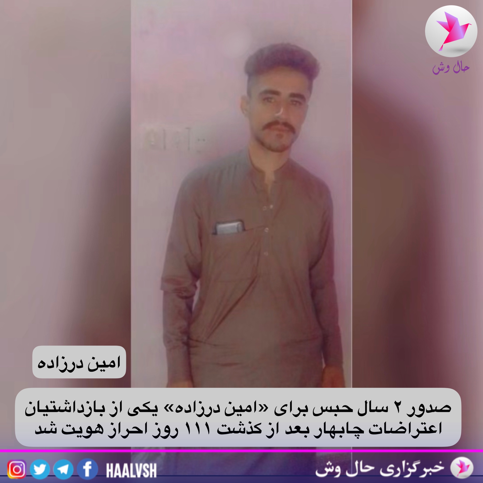 «امین درزاده» شهروند بلوچ که در جریان اعتراضات چابهار در ۶ مهرماه ۱۴۰۱، توسط نیروهای امنیتی بازداشتشده بود به ۲ سال حبس تعزیری محکوم شد