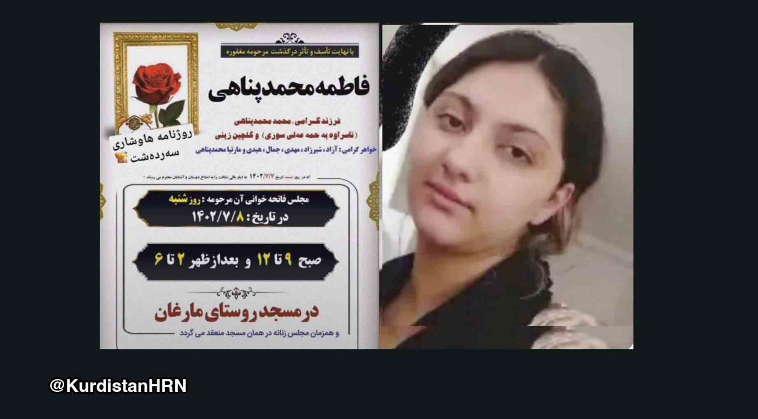بنا بە اطلاع شبکە حقوق بشر کردستان، روز گذشته ۷ مهر، فاطمە محمدپناهی ١٧ سالە اهل روستای «مارغان» شهرستان سردشت استان آذربایجانغربی توسط دو برادر ناتنی و همسرش به قتل رسید.