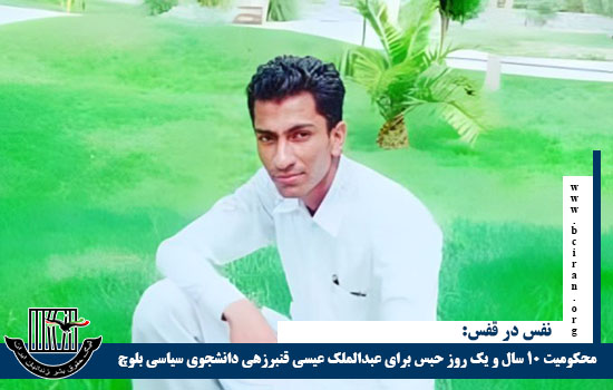 همچنین در این گزارش عبدالملک عیسی قنبرزهی فرزند ابراهیم اهل روستای شورک زاهدان، دانشجوی رشته کارشناسی ادبیات عرب از دانشگاه ملی سیستان و بلوچستان، که در سال ۹۹ توسط نیروهای اطلاعات در خیابان خیام زاهدان بازداشت و مدت ۳ ماه را دربازداشتگاه این نهاد تحت شکنجه سپری کرده بود نهایتا از شعبه شش دادگاه انقلاب زاهدان از بابت اتهامات عضویت در گروهای مخالف نظام و تبلغ علیه نظام به ۱۰ سال و یک روز حبس تعزیری محکوم شده است.