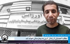 خبرگزاری هرانا – مطلب احمدیان، زندانی سیاسی امروز دوشنبه بیست و یکم خردادماه، در پی حال نامساعد جسمی از زندان اوین به بیمارستان خارج از زندان منتقل شد.