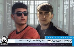 خبرگزاری هرانا – روز سه شنبه، رزگار مولودی و کامیار ایزدی، دو نوجوان ساکن مهاباد، پس از احضار به اداره اطلاعات این شهر بازداشت و به بازداشتگاه اداره اطلاعات ارومیه منتقل شدند.