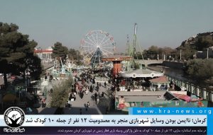 به گزارش خبرگزاری هرانا به نقل از ایرنا، در پی حادثه ای در شهربازی کرمان ۱۲ نفر، شامل ۱۰ کودک دچار مصدومیت شدند.