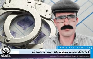 به گزارش خبرگزاری هرانا به نقل از حال وش، روز پنجشنبه هشتم شهریورماه، یک شهروند در شهرستان کرمان بازداشت شد.