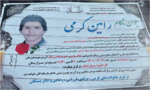 رامین کرمی فرزند پرویز اهل شهرستان سرپل ذهاب که روز چهارشنبه بیستم مهرماه در اعتراضات سراسری در کرمانشاه بر اثر شلیک نیروهای امنیتی زخمی شده بود، جان خود را از دست داد.