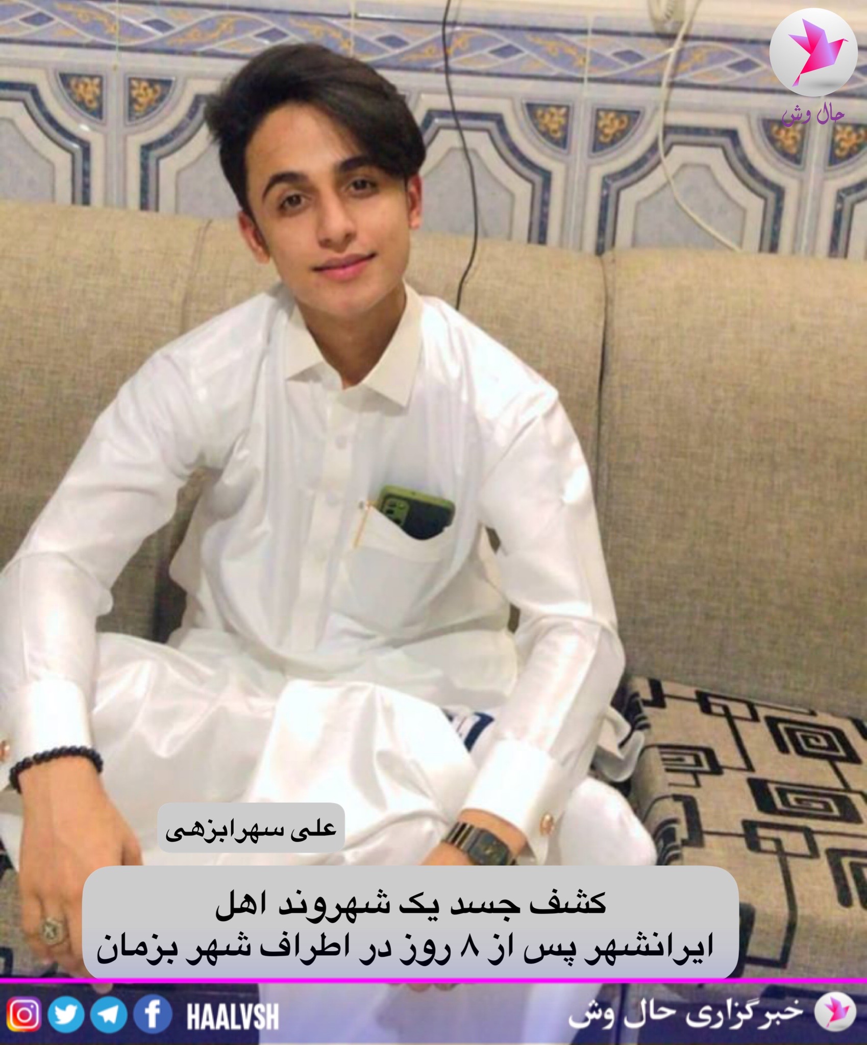 هویت این شهروند بلوچ « علی سهرابزهی» ۱۹ ساله فرزند محمد اهل شهر بزمان و ساکن شهرستان ایرانشهر توسط حال وش احرازشده است.