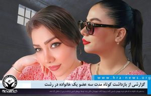 خبرگزاری هرانا – روز یکشنبه یکم مردادماه، سه عضو یک خانواده به نام های فریده بهبودی، یاسمن رأفت و رومینا رأفت، شهروندان ساکن رشت توسط نیروهای امنیتی بازداشت و پس از ساعاتی آزاد شدند.