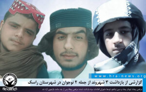 خبرگزاری هرانا – روز پنجشنبه ۱۰ مهرماه، سه شهروند از جمله دو نوجوان ساکن شهر پیشین از توابع شهرستان راسک به نامهای مرتضی بیجاد، ابوبکر بیجاد و مبین نیکجو، توسط ماموران اطلاعات سپاه بازداشت شدند. مرتضی بیجاد پس از چند ساعت بازجویی آزاد شد.