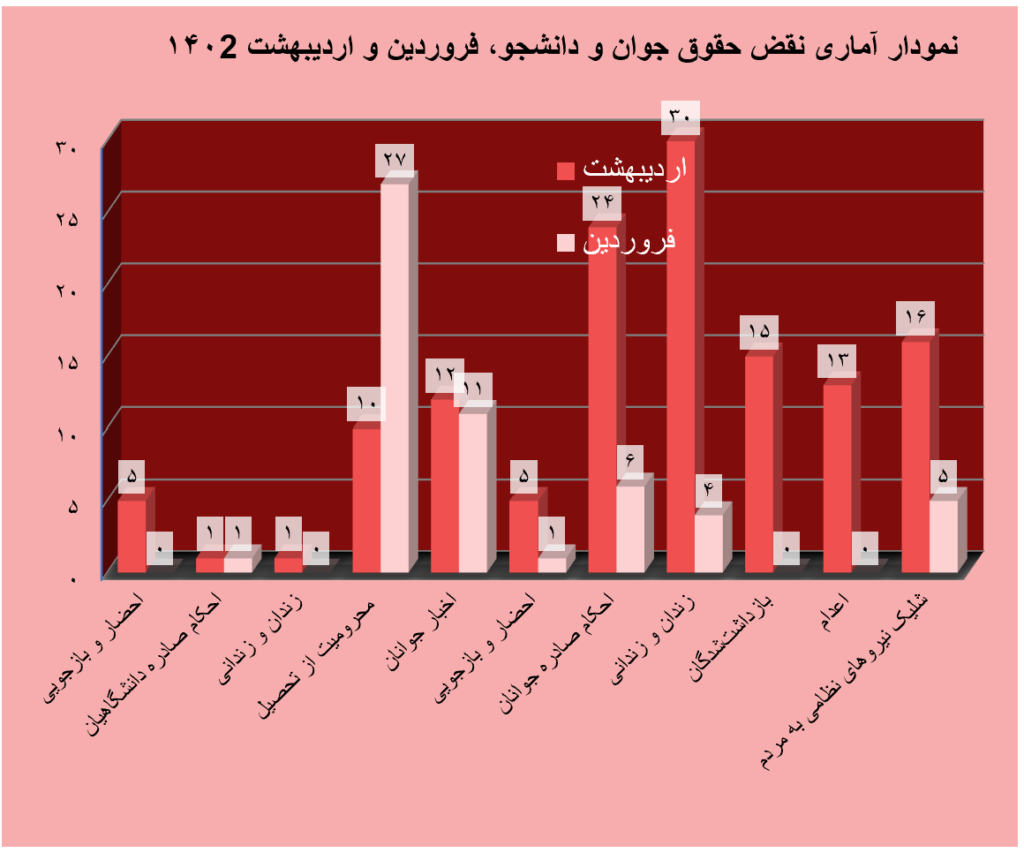 گزارش آماری نقض حقوق جوان و دانشجو، اردیبهشت ماه ۱۴۰۲