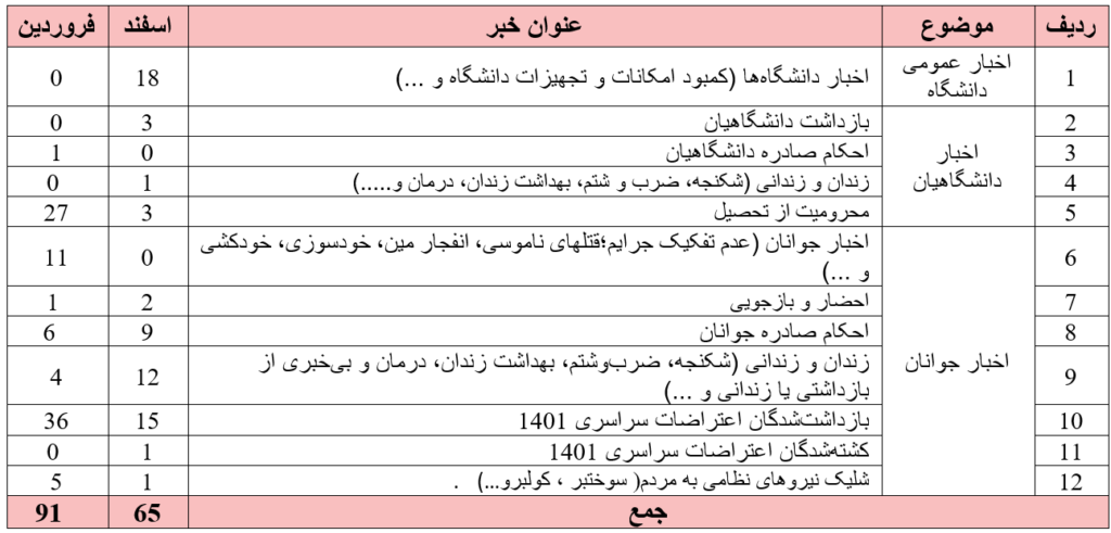 گزارش آماری نقض حقوق جوان و دانشجو، فروردین ماه ۱۴۰۲