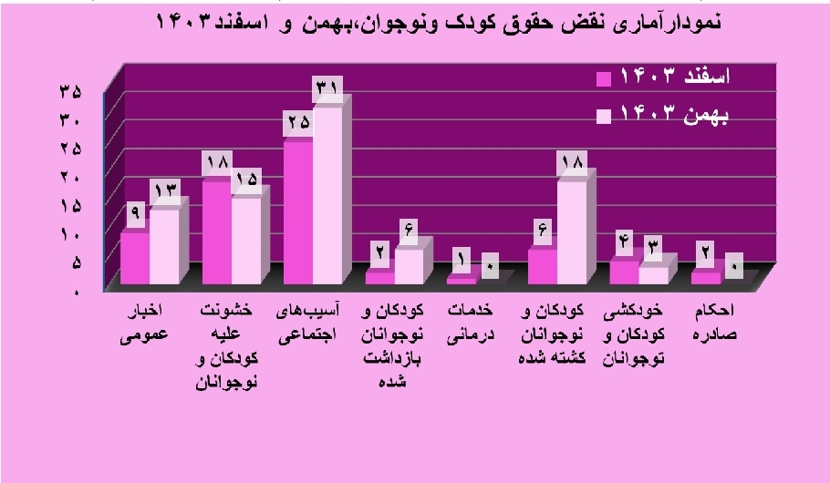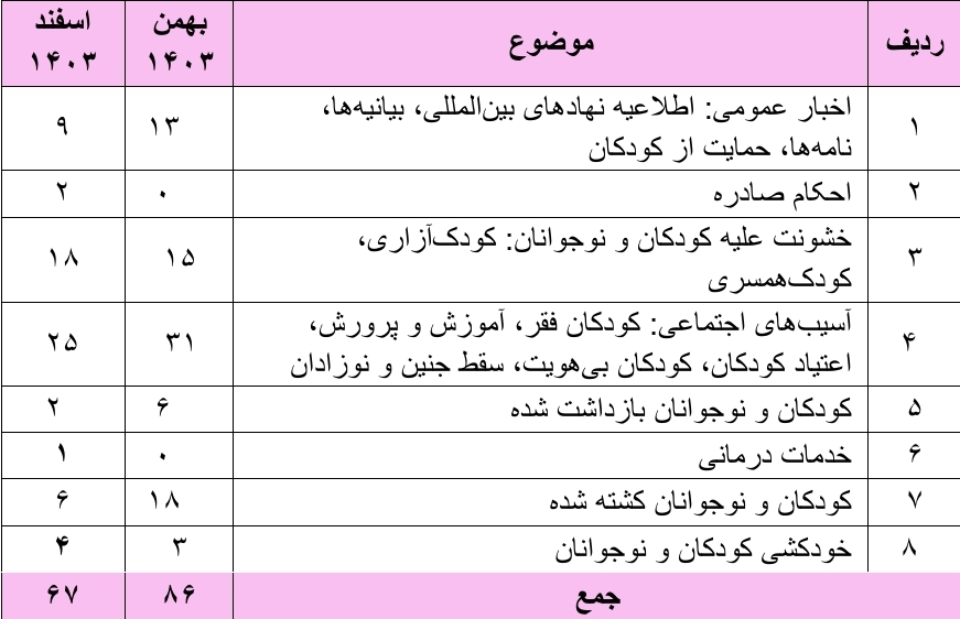 این گزارشات آماری از میان بیش از۸۰ خبر که در طول اسفند ماه ۱۴۰۳ تهیه شده است.