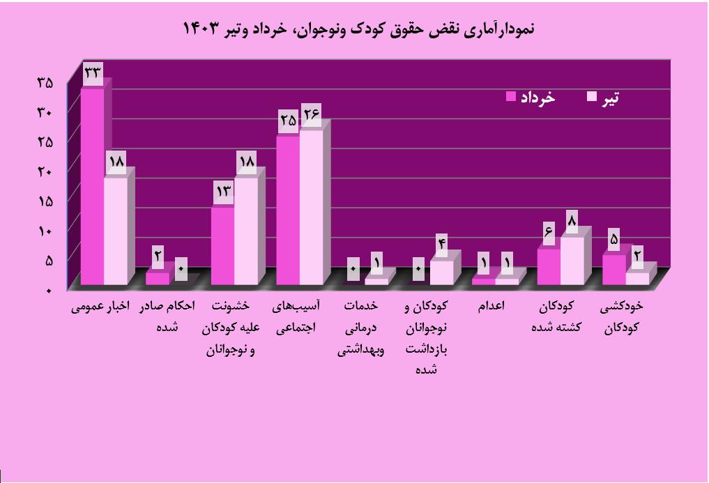 گزارش آماری نقض حقوق کودک و نوجوان تیر ماه ۱۴۰۳