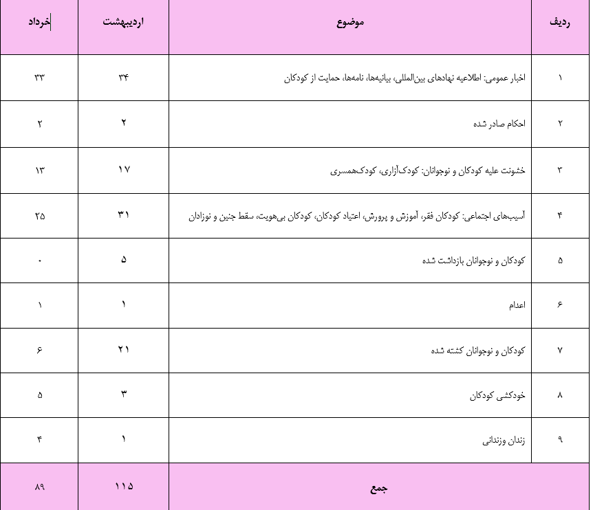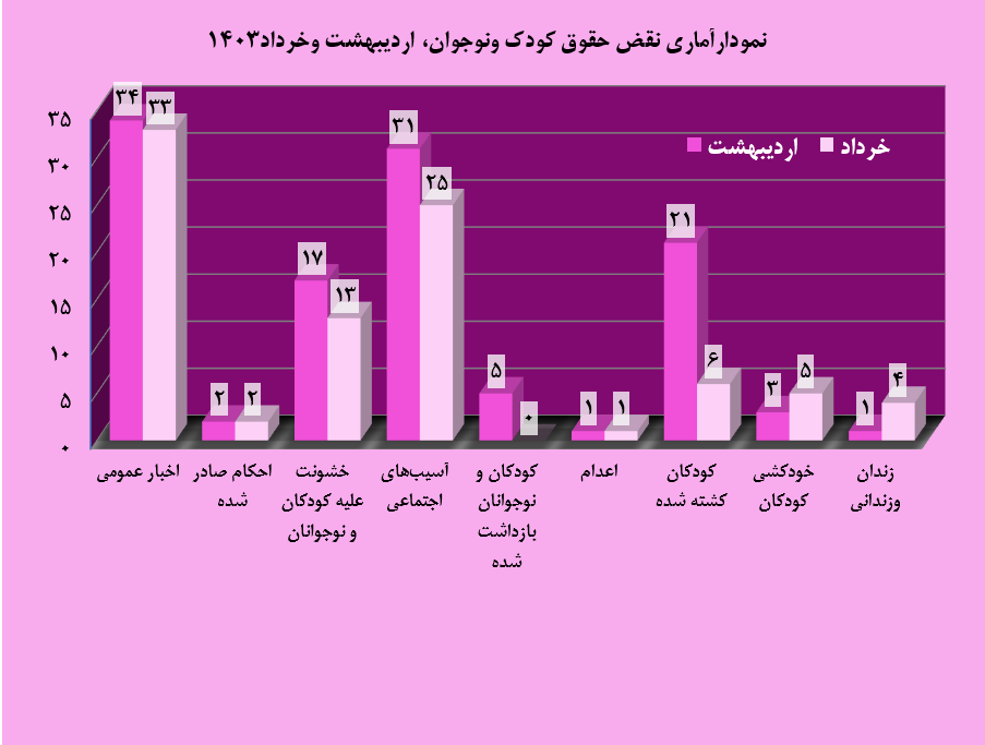 گزارش آماری نقض حقوق کودک و نوجوان خرداد ماه ۱۴۰۳