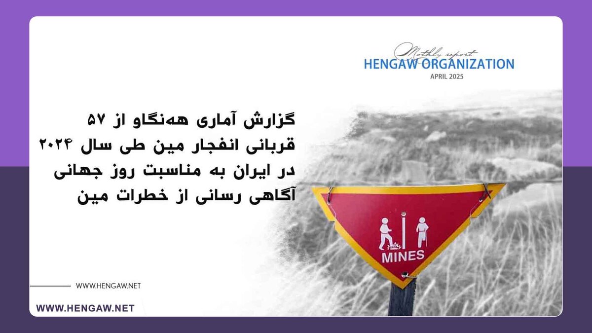 روز ۴ آوریل هر سال، توسط مجمع عمومی سازمان ملل متحد به منظور اطلاعرسانی درباره خطرات مناطق آلوده به مین و گلولههای عمل نکرده جنگی، به عنوان« روز جهانی آگاهی رسانی از خطرات مین» نامگذاری شده است. سازمان حقوق بشری ههنگاو بدین منظور گزارشی آماری از قربانیان مین در سال ۲۰۲۴ آماده کرده است که نشان میدهد دستکم ۵۷ شهروند در این بازه زمانی قربانی انفجار مین در ایران شدهاند.