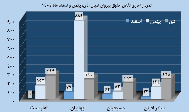 گزارش سه‌ماهه آماری و تحلیلی نقض حقوق پیروان ادیان، دی، بهمن و اسفند‌ماه 1404