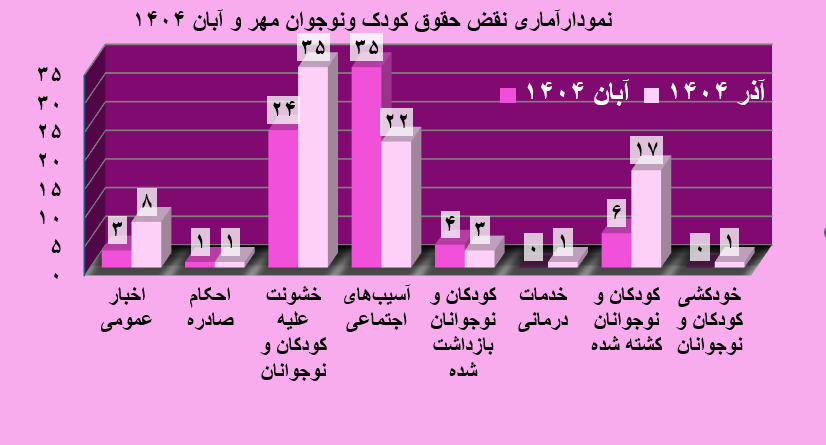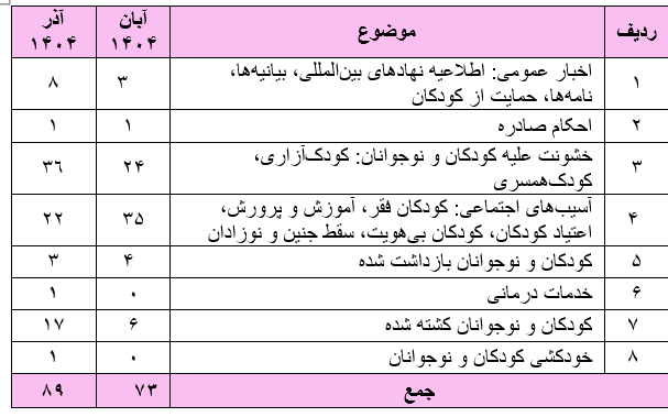 گزارش نقض حقوق کودک و نوجوان، آذر ماه۱۴۰۴