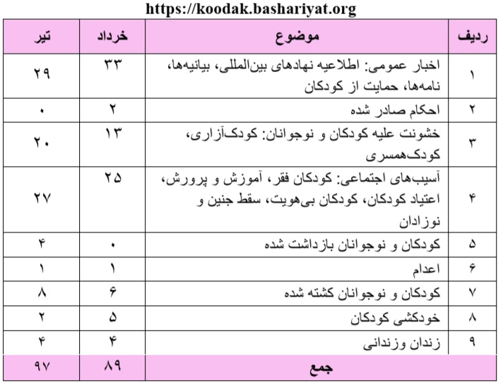 گزارش نقض حقوق کودک و نوجوان، تیر۱۴۰۳