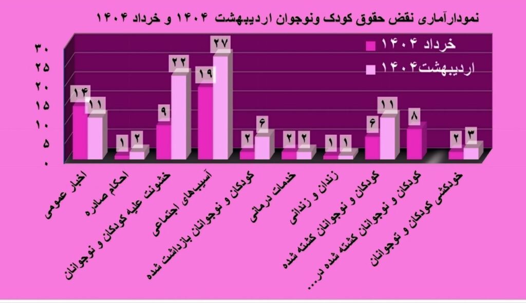 این گزارشات آماری از میان بیش از ۷۰ خبر که در طول خرداد ماه ۱۴۰۴ تهیه شده است.