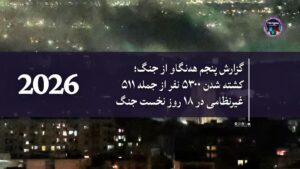 همزمان با هجدهمین روز از جنگ میان ایالات متحده آمریکا، اسرائیل و جمهوری اسلامی ایران، سازمان حقوق بشری ههنگاو ضمن ابراز نگرانی شدید از افزایش شمار قربانیان غیرنظامی تازهترین گزارش خود را منتشر میکند. . بر اساس آمار تایید شده توسط مرکز اسناد ههنگاو، تا پایان روز چهاردهم جنگ دستکم ۵۳۰۰ نفر جان خود را از دست دادهاند که ۹.۶٪ آنها شامل ۵۱۱ شهروند غیرنظامی و چهار هزار و ۷۸۹ تن از نظامیان ایران است.
