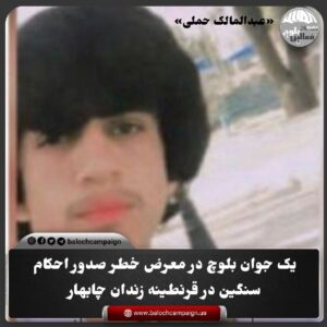 به گزارش کمپین فعالین بلوچ، “عبدالمالک حملی” ۱۹ ساله، فرزند ملک، اهل چابهار در معرض خطر صدور احکام سنگین قرار دارد.