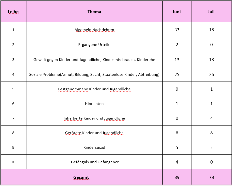 Bericht über die Verletzung der Rechte von Kindern und Jugendlichen, im Juli 2024