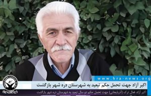 اکبر آزاد جهت تحمل حکم تبعید به شهرستان دره شهر بازگشت