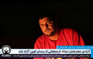 خبرگزاری هرانا ۱۵/۱۲/۱۴۰۱ میلاد ارسنجانی، زندانی سیاسی سابق و از بازداشت شدگان اعتراضات سراسری اخیر، از زندان اوین آزاد شد. به گزارش خبرگزاری هرانا، ارگان خبری مجموعه فعالان حقوق بشر در ایران، میلاد ارسنجانی، از زندان اوین آزاد شدند. یک منبع مطلع در خصوص نحوه آزادی آقای ارسنجانی به هرانا گفت که وی مشمول بخشنامه …