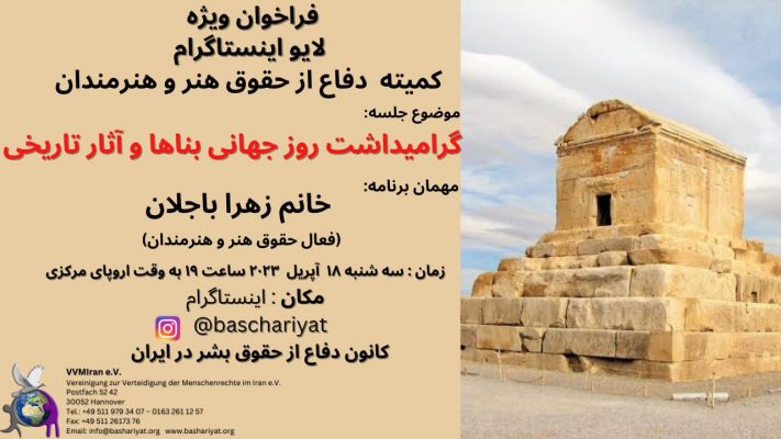 فراخوان جلسه سخنرانی عمومی کانون دفاع از حقوق بشر در ایران در تاریخ ۸ آپریل ۲۰۲۳