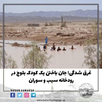 یک کودک بلوچ در رودخانه روتُک شهرستان سیب و سوران غرق شد و جان خود را از دست داد. به گزارش کمپین فعالین بلوچ، روز ۱۲ مرداد ماه ۱۴۰۱، یک کودک بلوچ بر اثر غرق شدگی جان باخت. هویت این کودک بلوچ “اسماعیل رضازهی” ۱۸ ساله، فرزند ابراهیم، اهل روستای کهن کرمشاه از توابع شهرستان …