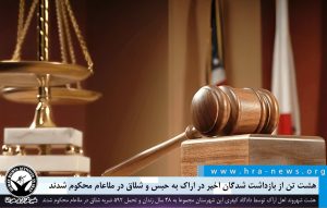 خبرگزای هرانا – محمد سلطانی، مجید نیک عهد، ابوالفضل خوران، وحیدرضا عربی، مهدی نیک عهد، رامتین ادریسی، مصطفی کمانی و محمدرضا اسدی شهروندان اهل اراک توسط دادگاه کیفری این شهرستان مجموعا به ۴۸ سال زندان و تحمل ۵۹۲ ضربه شلاق در ملاعام محکوم شدند. براساس این حکم سه سال از میزان حبس صادره برای مجید …