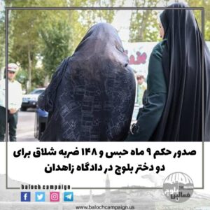 صدور حکم ۹ ماه حبس و ۱۴۸ ضربه شلاق برای دو دختر بلوچ در دادگاه زاهدان