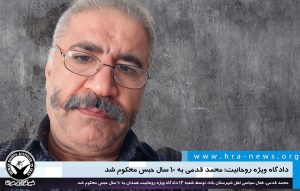 خبرگزاری هرانا – محمد قدمی، فعال سیاسی اهل شهرستان بانه، توسط شعبه ۱۳ دادگاه ویژه روحانیت همدان به ۱۰ سال حبس محکوم شد. به گزارش خبرگزاری هرانا، ارگان خبری مجموعه فعالان حقوق بشر در ایران، محمد قدمی، فعال سیاسی اهل شهرستان بانه به حبس محکوم شد. شعبه ۱۳ دادگاه ویژه روحانیت همدان آقای قدمی را از …