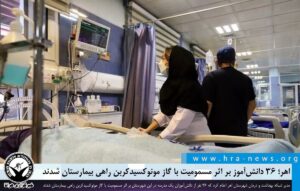 ۱۴۰۴/۰۸/۲۷ هرانا مدیر شبکه بهداشت و درمان شهرستان اهر اعلام کرد که ۳۶ نفر از دانشآموزان یک مدرسه در این شهرستان بر اثر مسمومیت با گاز مونوکسیدکربن راهی بیمارستان شدند. به گزارش خبرگزاری هرانا به نقل از ایسنا، ۳۶ دانش آموز در شهرستان اهر بر اثر مسمومیت با گاز مونوکسیدکربن راهی بیمارستان شدند. مدیر شبکه …
