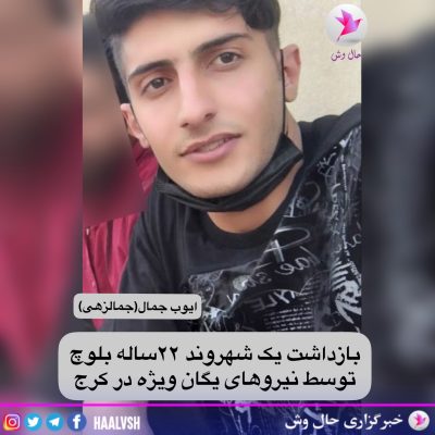 ه گزارش حال وش ۲۵/۱۰/۱۴۰۱ یک شهروند ۲۲ ساله بلوچ در روز ۳ آبان ماه ۱۴۰۱، توسط نیروهای یگان ویژه در کرج بازداشت و همچنان تحت شکنجه در زندان قزلحصار بسر میبرد. هویت این شهروند بلوچ «ابوب جمال (جمالزهی)» متولد ۱۳۷۹ فرزند کمال اهل و ساکن نهبندان احراز شده است. به گفته یک منبع مطلع:« ایوب که از مدت پو سال پیش برای کارگری به کرج رفته بود در بحبوحه اعتراضات ۳ آبان نوسط نیروهای یگانویژه بازداشت و بشدت مورد ضرب و جرح قرار گرفته بطوری که دنده ها و گوشش شکسته شده و به کارهای نکرده تحت شکنجه اعترافاجباری علیه خودش کرده و اوراقی را بالاجبار ماموران امنیتی امضا کرده است». منبع افرود:« در همین مدت بازداشت در زندان قزلحصار در اعتراض به شکنجه و عدم رسیدگی به پرونده اش دست به اعتصاب غذا کردهکه توسط ماموران زندان به سلول تنفرادی منتقل و مورد ضرب و ستم قرار گرفته است، ایوب هم اکنون در رندان قزلحصار در بلاتکلیفیبسر میبرد. منبع ادامه داد«اتهامات وارد شده به ایوب جمال«خرید و فروش مواد آتش زا، درگیری با ماموران نیروی انتظامی، تخریب اموال عمومی،و اقدام علیه امنیت ملی عنوان شده که وی بشدت این اتهامات را رد کرده و گفت که نیروهای امنیتی قصد دارند او را به گروه داعش نسبتبدهند». قابل ذکر است بدنبال اعتراضات اخیر در سیستان و بلوچستان تعداد زیادی از شهروندان و از جمله کودکان زیر ۱۸سال بدون دلیل و برخلاف روال قانونی بازداشت شده اند که از سرنوشت بسیاری اطلاعی در دست نیست.