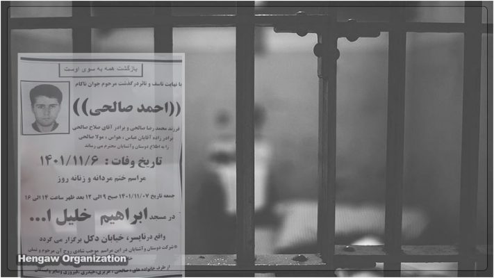 ههنگاو؛ پنجشنبه ۶ بهمن ۱۴۰۱ یک جوان اهل سنندج به نام احمد صالحی چند ساعت پس از بازداشت توسط نیروهای ستاد مبارزه با مواد مخدر زیر شکنجه این ماموران جانباخت. بر اساس گزارش رسیده به سازمان حقوق بشری ههنگاو، روز چهارشنبه ۵ بهمن ۱۴۰۱ (۲۵ ژانویه ۲۰۲۳)، یک جوان اهل محله نایسر سنندج به نام احمد صالحی ۳۵ساله تنها ساعاتی …