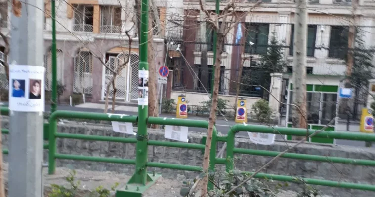 نصب تصویر کودکان کشتهشده در اعتراضات مقابل دفتر سازمان ملل در تهران